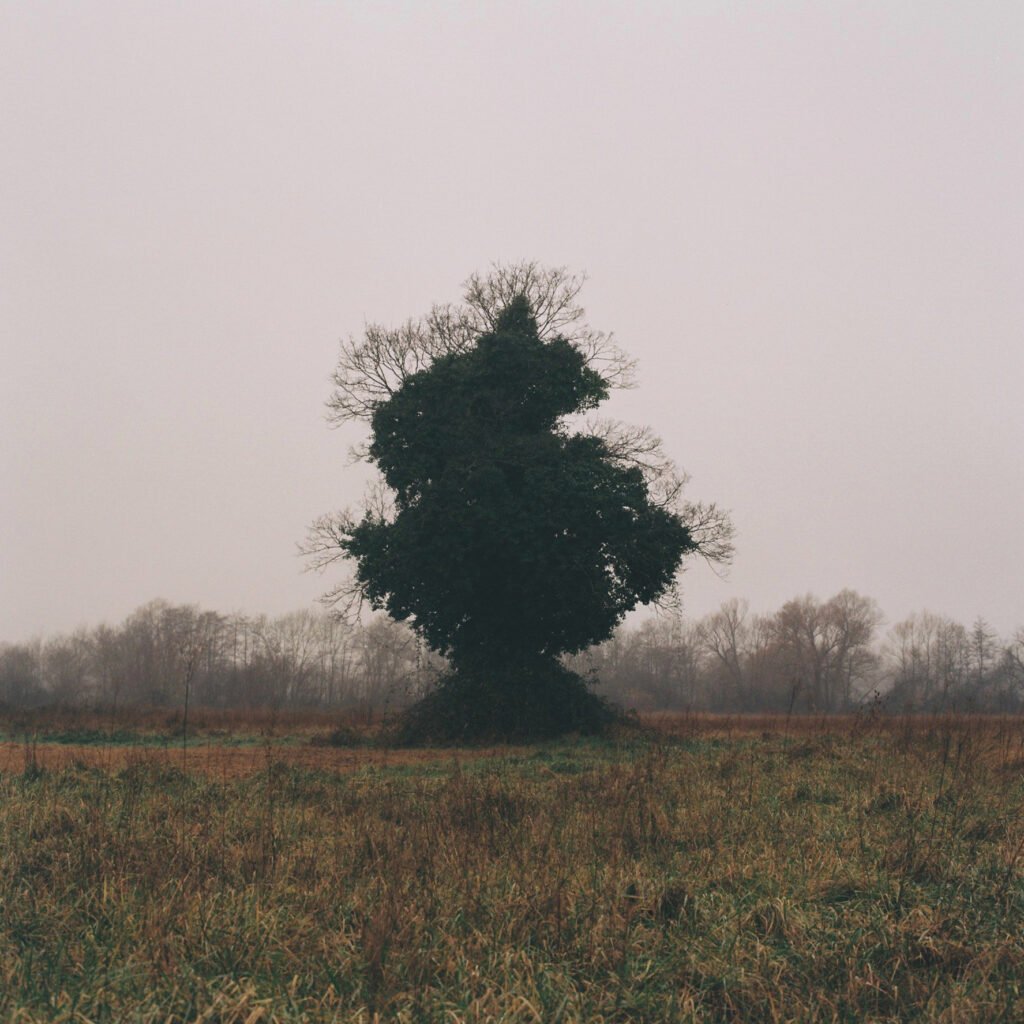 entre collections, sujets récurrents et thèmes favoris, entre mon calvaire préféré et des bouleaux nus et pâles qui se superposent, entre sapins de noël et monuments aux morts, entre cartes affichées aux murs et voies sans issue, entre vieux appareils soviétiques et une vieille pellicule argentique trouvée par hasard, entre un jardin inconnu dans lequel je m’immisce et ma caravane mangée par la végétation sur la parcelle du bas, je me balade à l’orée du bois, au bord du monde
